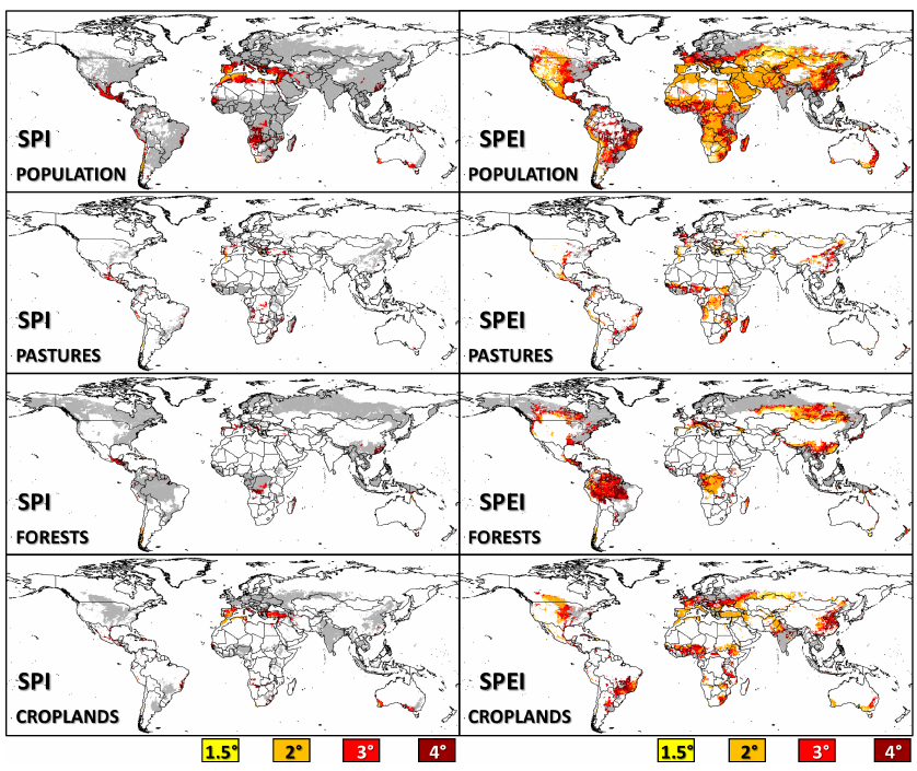 Global exposure of population and land-use to meteorological droughts under different warming levels and SSPs: a CORDEX-based study.